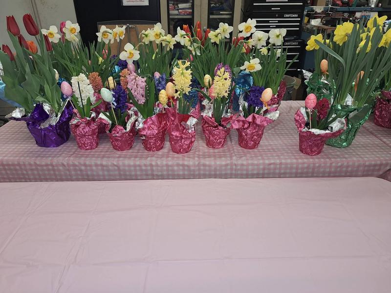 Here are a few photos of the beautiful flowers that can be purchased tomorrow at our Auxiliary flower and bake sale